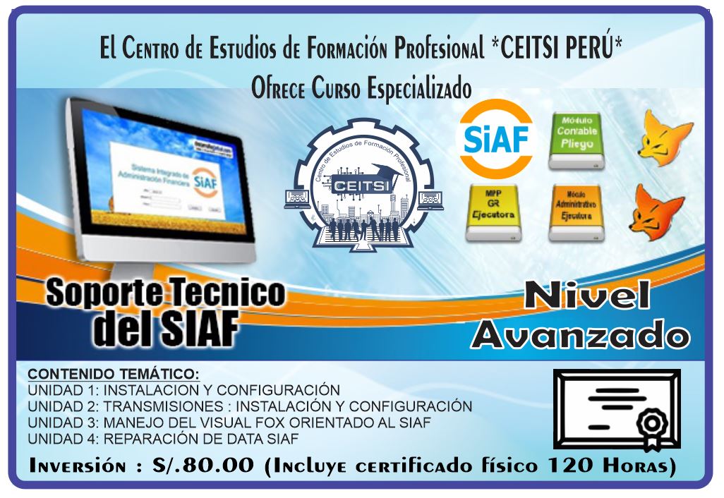 CURSO ESPECIALIZADO DE SOPORTE TECNICO SIAF