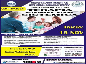 (Incluye materiales y certificado físico firmado por el Colegio de Trabajadores Sociales - CD Ayacucho por 150 horas académicas)